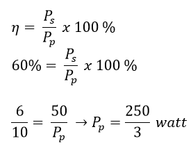 efisiensi 50 % dengan kumparan sekundernya