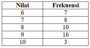Hasil ulangan Matematika sekelompok siswa disajikan pada tabel berikut.